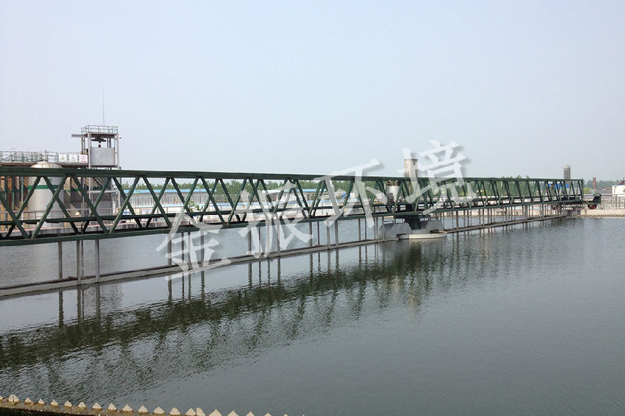 全橋式周邊傳動(dòng)吸泥機適用於汙水處理廠幅流式二次沉(chén)澱池。其主要功能是將沉降在池底的汙泥刮集至一組半徑方向布置的吸泥管管口,再通過中心排泥管排出,以便汙泥回流或濃縮(suō)脫水。視情況需要,還可(kě)以設置池麵刮渣機構,收集池麵浮渣並通過浮渣漏(lòu)鬥排出(chū)池(chí)外。