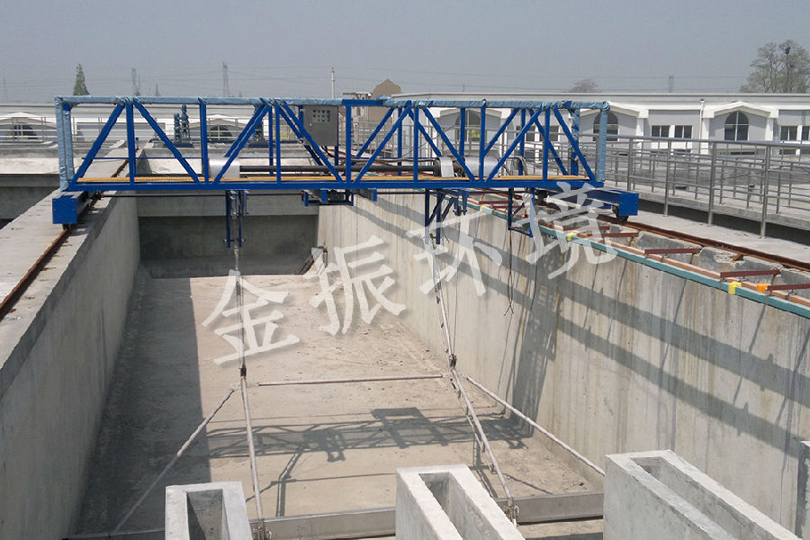 行車式(shì)抬耙刮(guā)泥機適用於(yú)汙水處理廠(chǎng)平流式沉澱池。其主要功能是(shì)將沉降在池底(dǐ)的汙泥刮集至積(jī)泥槽,以便(biàn)汙(wū)泥回流或濃縮脫水,並將水麵浮渣撇向集渣鬥(如有浮渣的話(huà)),通過浮渣漏鬥排出池外(wài),以便進一步處理。運行形式是邊運行邊吸(xī)泥。