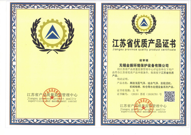近日,無錫金(jīn)振(zhèn)環境保護有限公司旗下產品榮獲江蘇省質(zhì)量監督管理中心頒發的“江蘇省優質產品證書”,這標誌著無錫金振走在了國內環保設備的(de)領先行列!