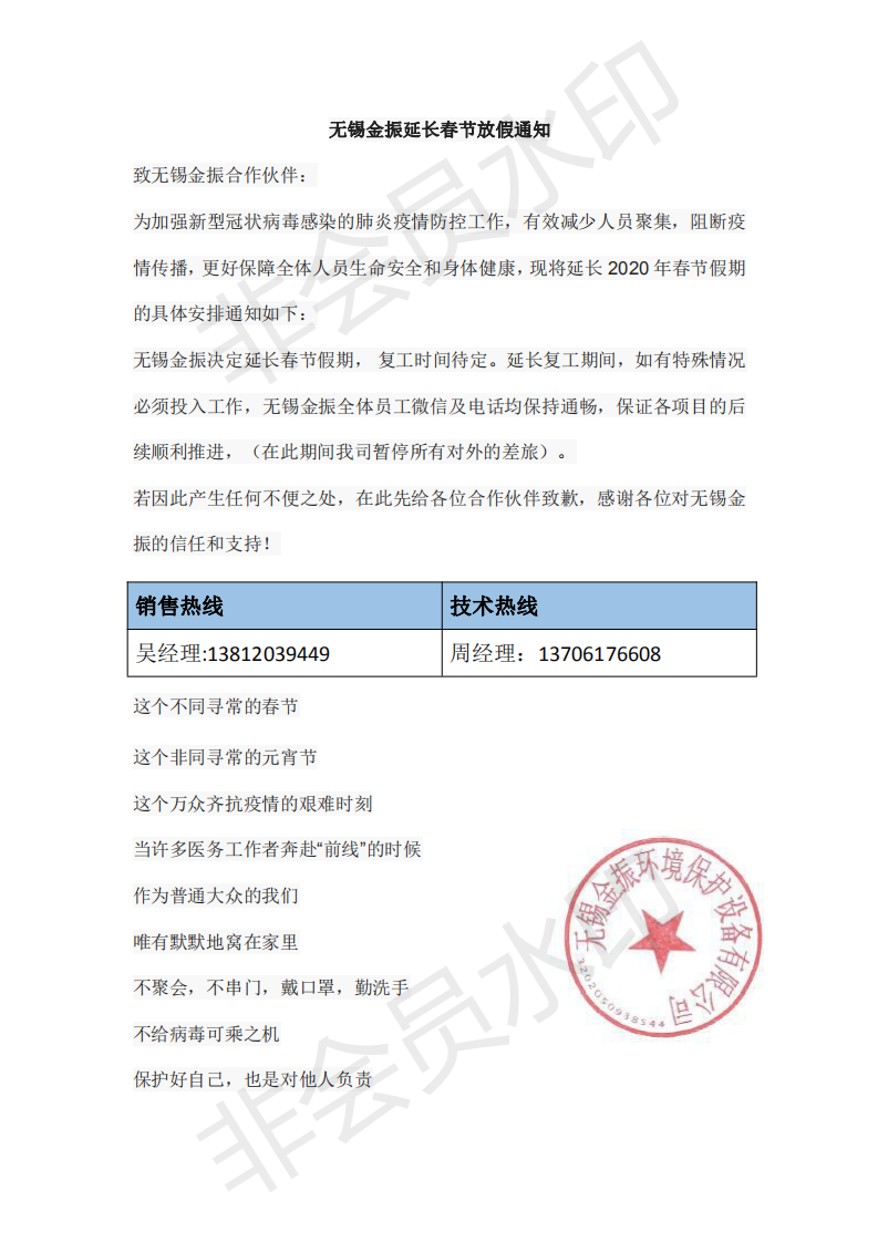 無錫金振延長春節放假通(tōng)知(zhī)